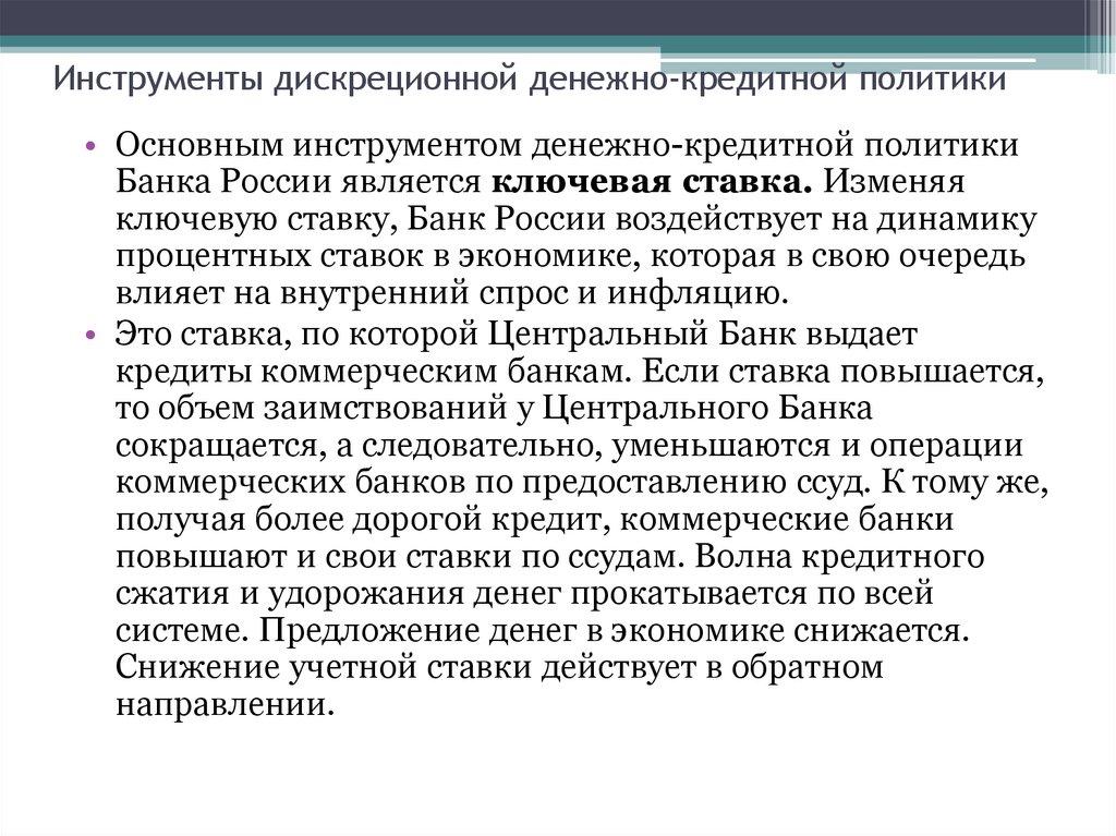 Инструменты дискреционной денежно-кредитной политики• Основным инструментом денежно-кредитной политики