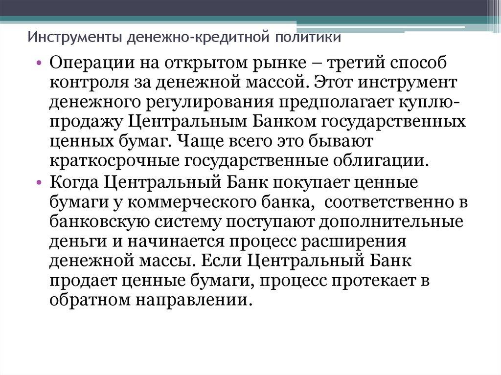 Инструменты денежно-кредитной политики• Операции на открытом рынке – третий способ