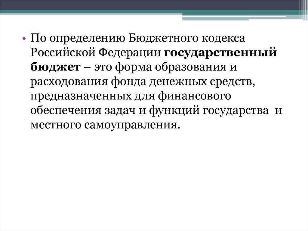 • По определению Бюджетного кодексаРоссийской Федерации государственный