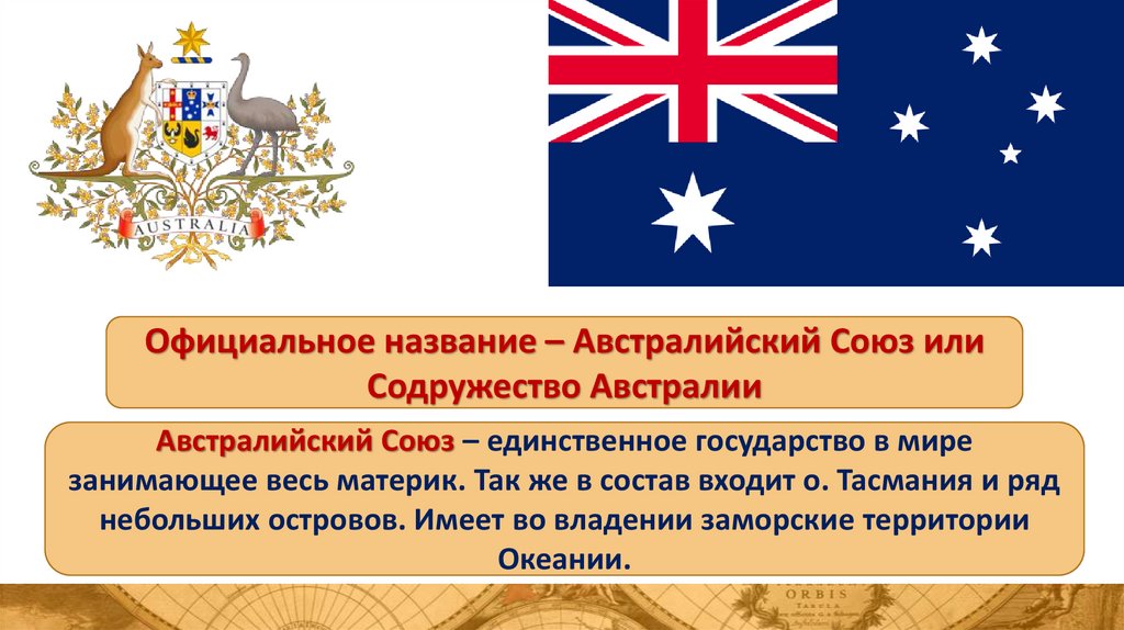 Официальное название – Австралийский Союз илиСодружество Австралии