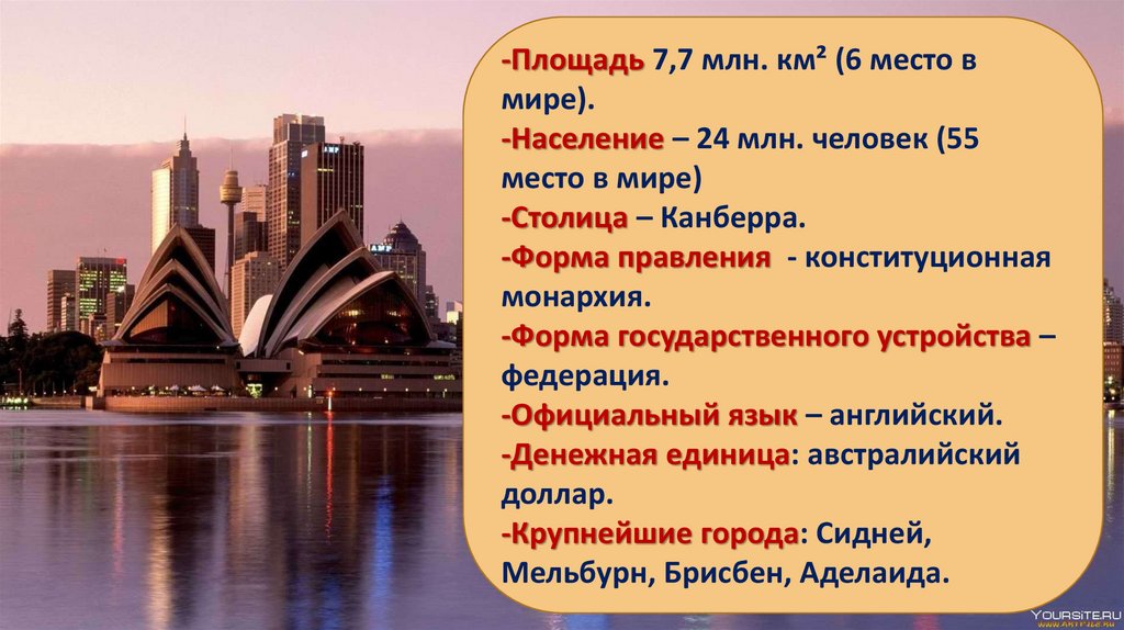 Население АвстралииНаселение составляет 24 млн. человек.