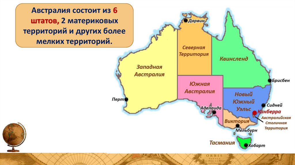 Австралия состоит из 6штатов, 2 материковых