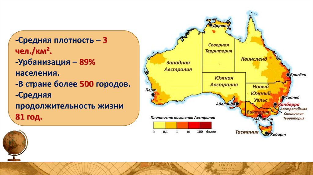 -Средняя плотность – 3чел./км².