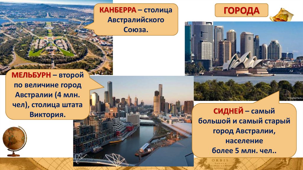 -Крупнейшие города: Сидней,