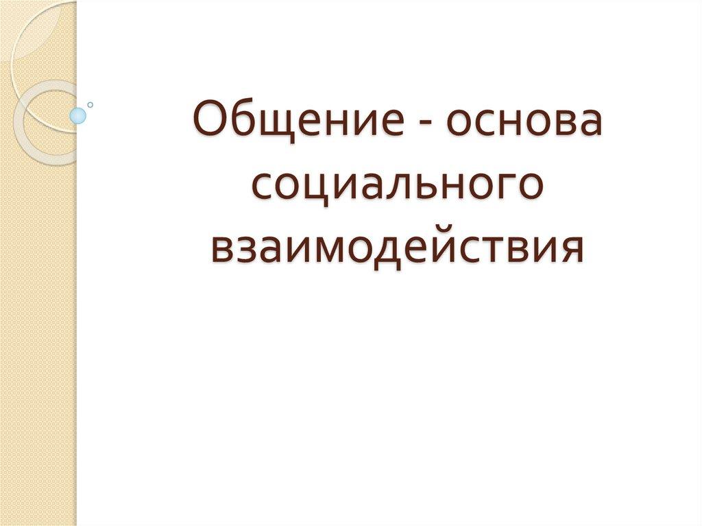 Общение - основа социального взаимодействия. Урок 20
