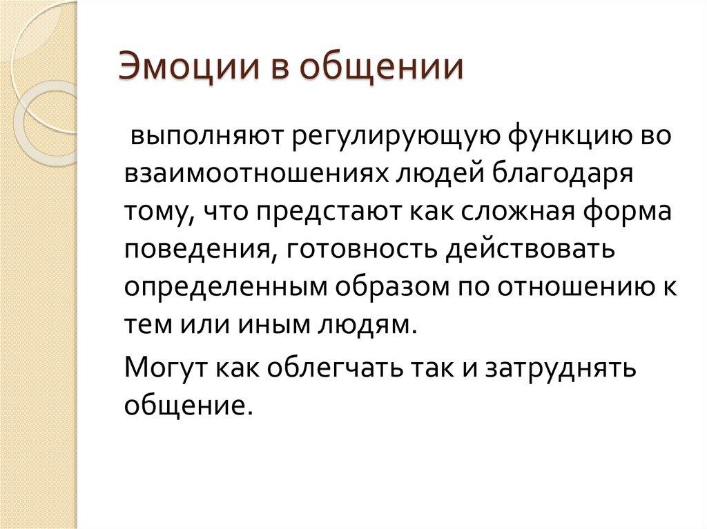 Эмоции в общениивыполняют регулирующую функцию во