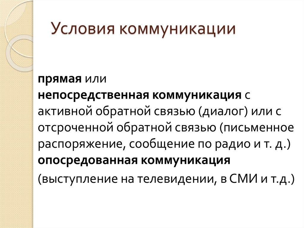 Условия коммуникациипрямая или