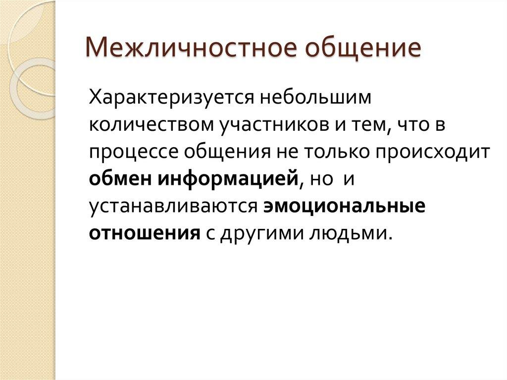 Межличностное общениеХарактеризуется небольшим