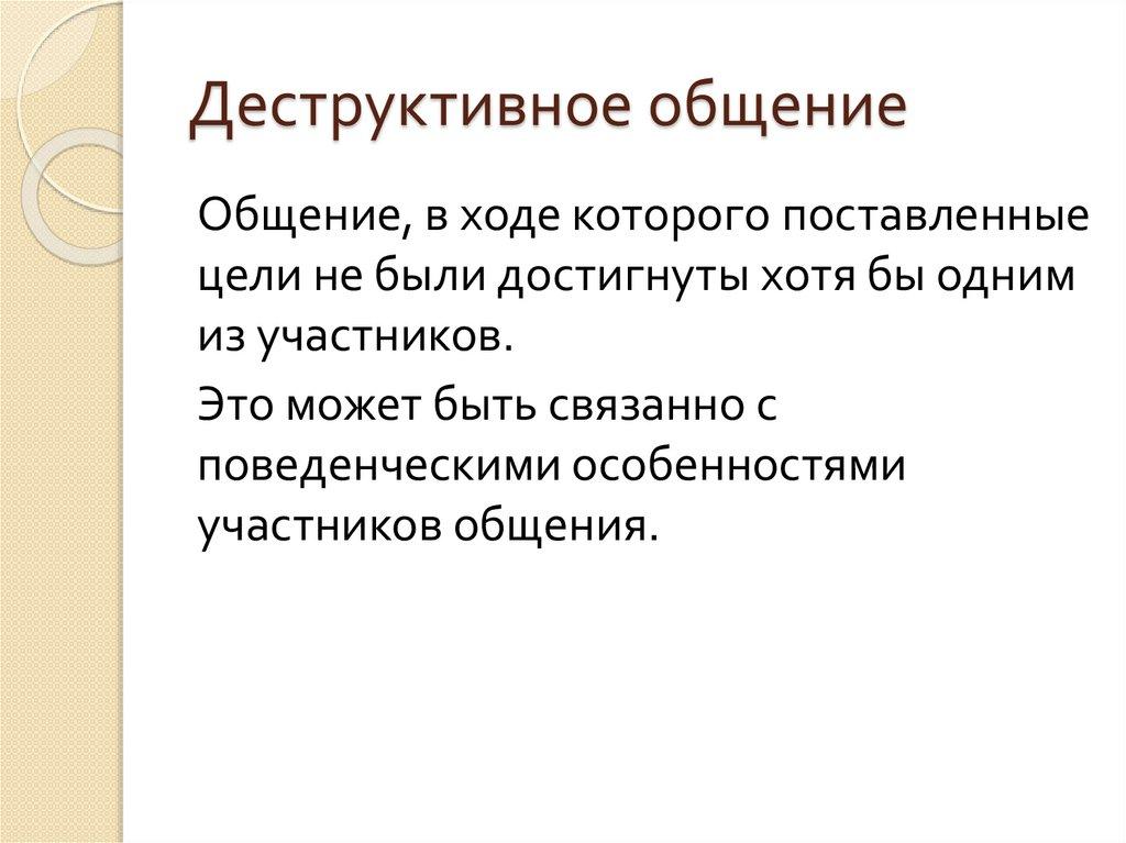 Деструктивное общениеОбщение, в ходе которого поставленные