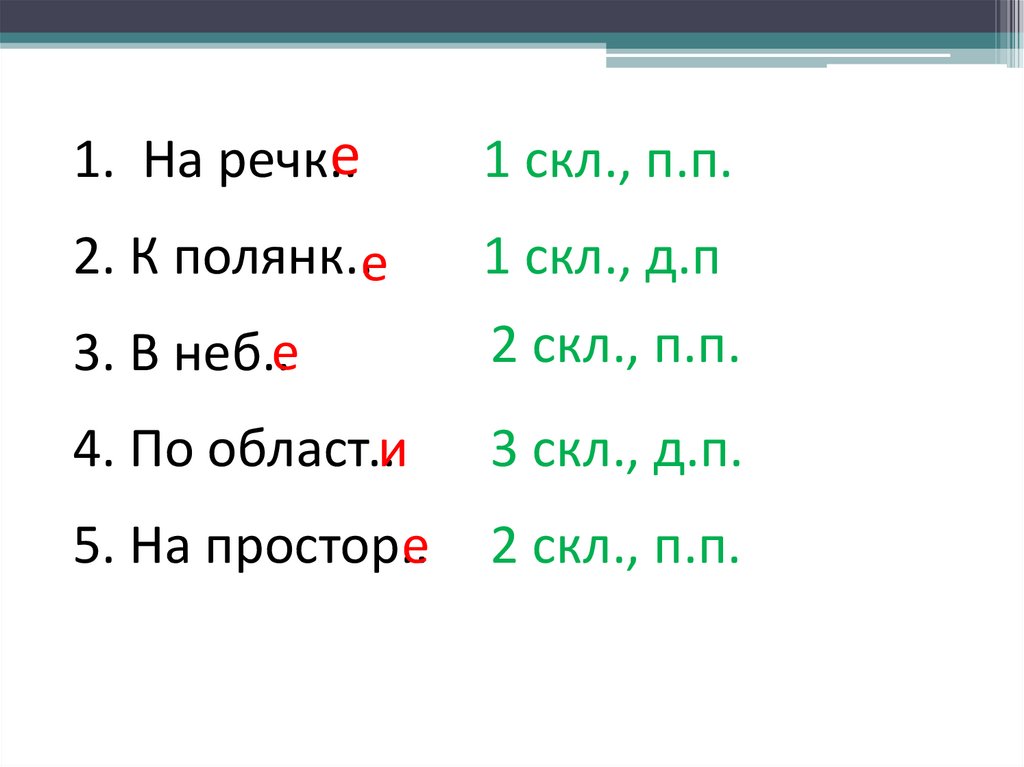 1. На речк..е1 скл., п.п.