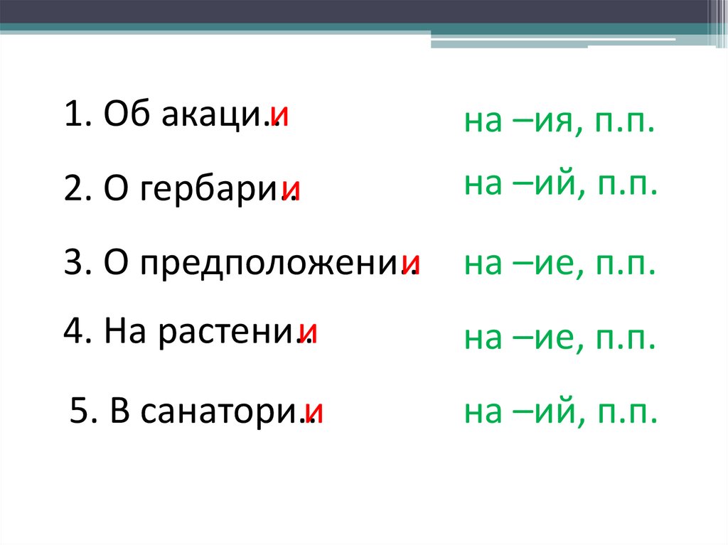 1. Об акаци..ина –ия, п.п.