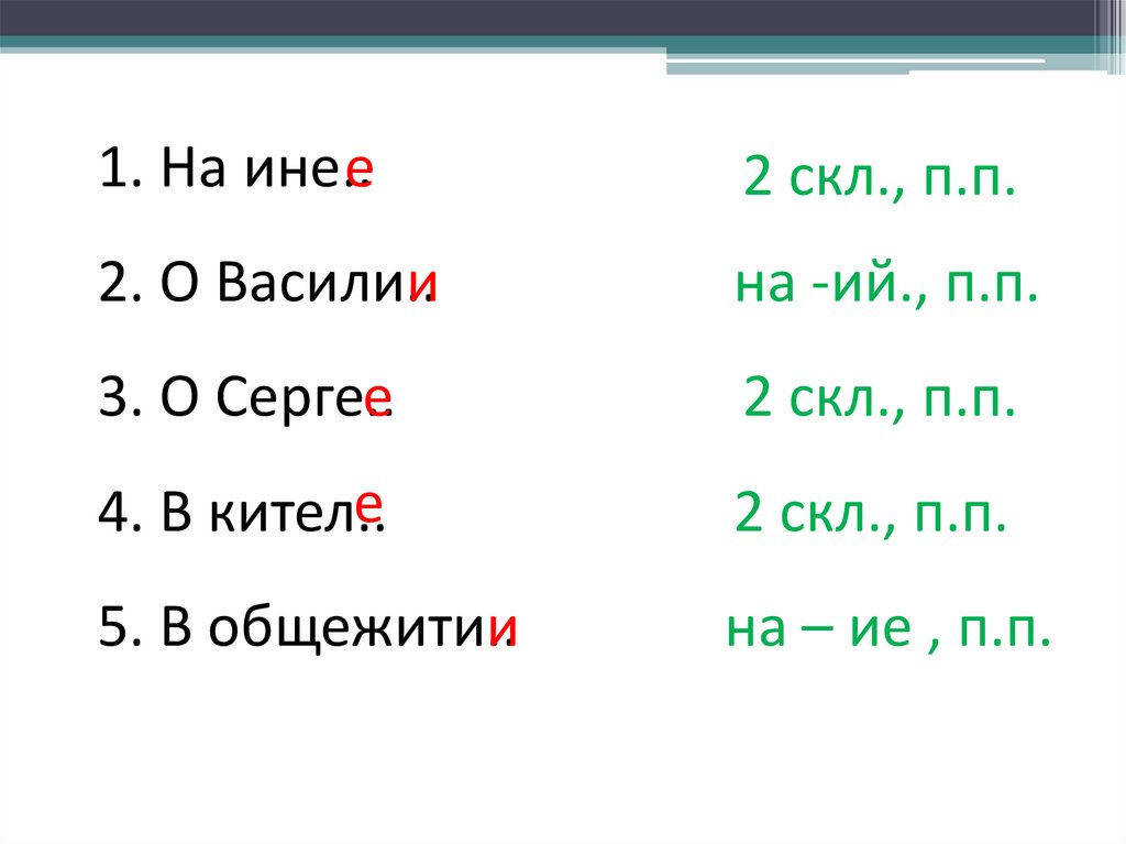 падежных окончаниях