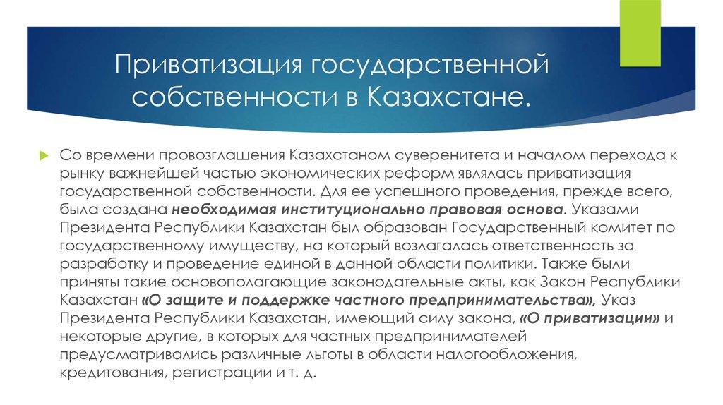 Начиная с1991 г. Конституция РК впервые определила право частной
