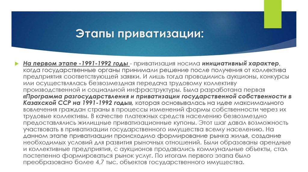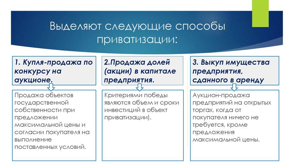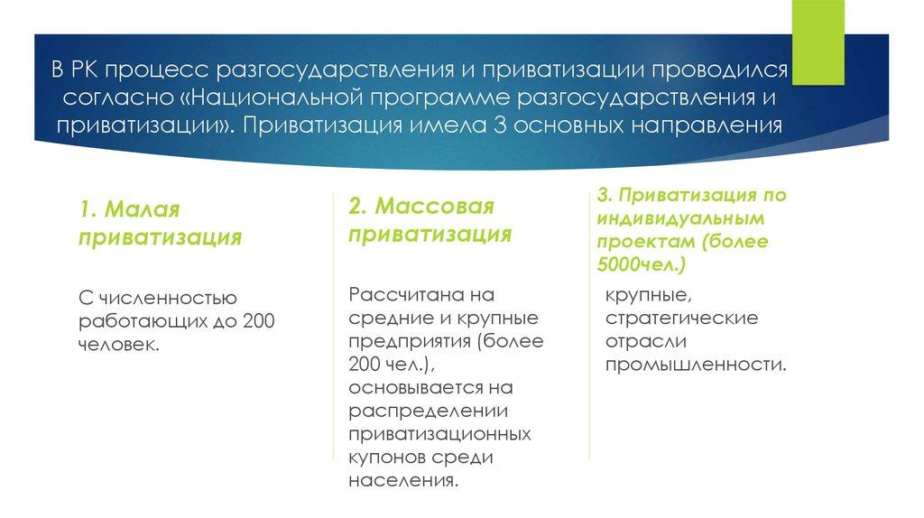 • сокращение правительственных расходов;• формирование слоя частных собственников;
