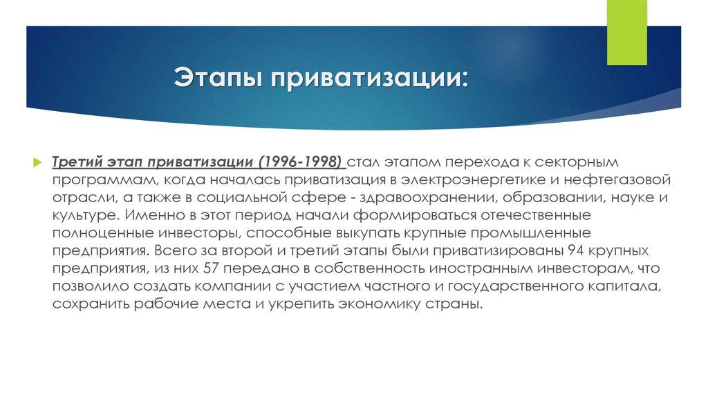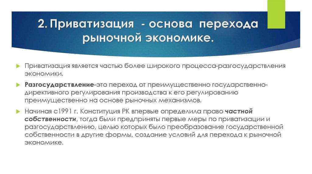 7. 2. Приватизация - основа перехода рыночной экономике.