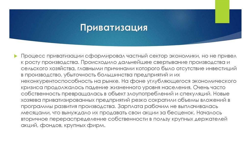 Приватизация является частью более широкого процесса-разгосударствленияэкономики.