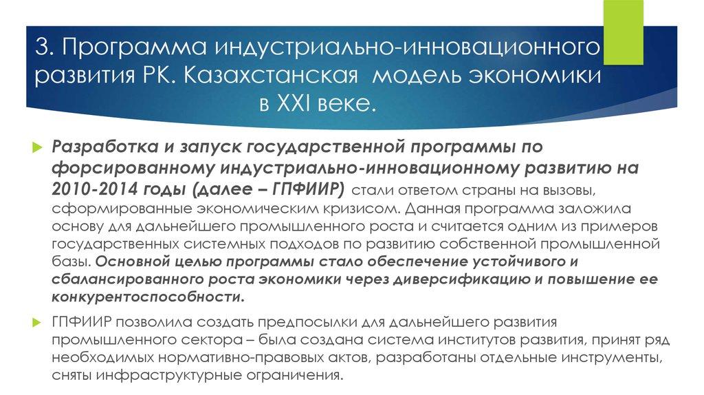 ГПИИР является частью промышленной политики Казахстана и сфокусирована на развитии
