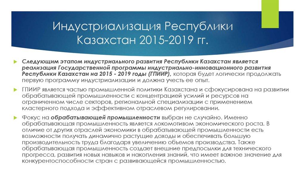 19. Индустриализация Республики Казахстан 2015-2019 гг.