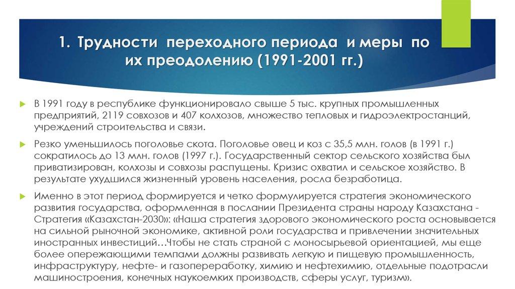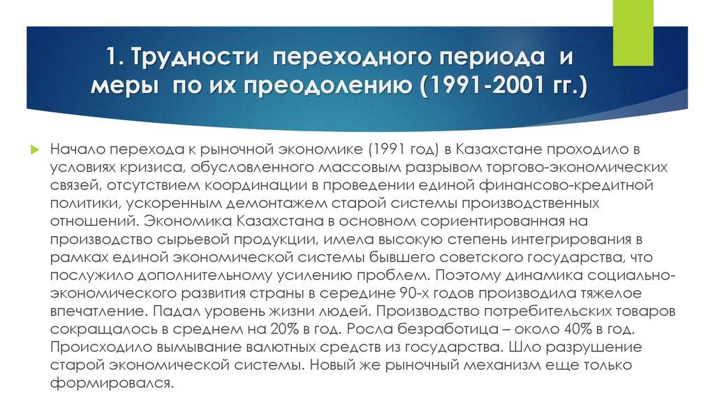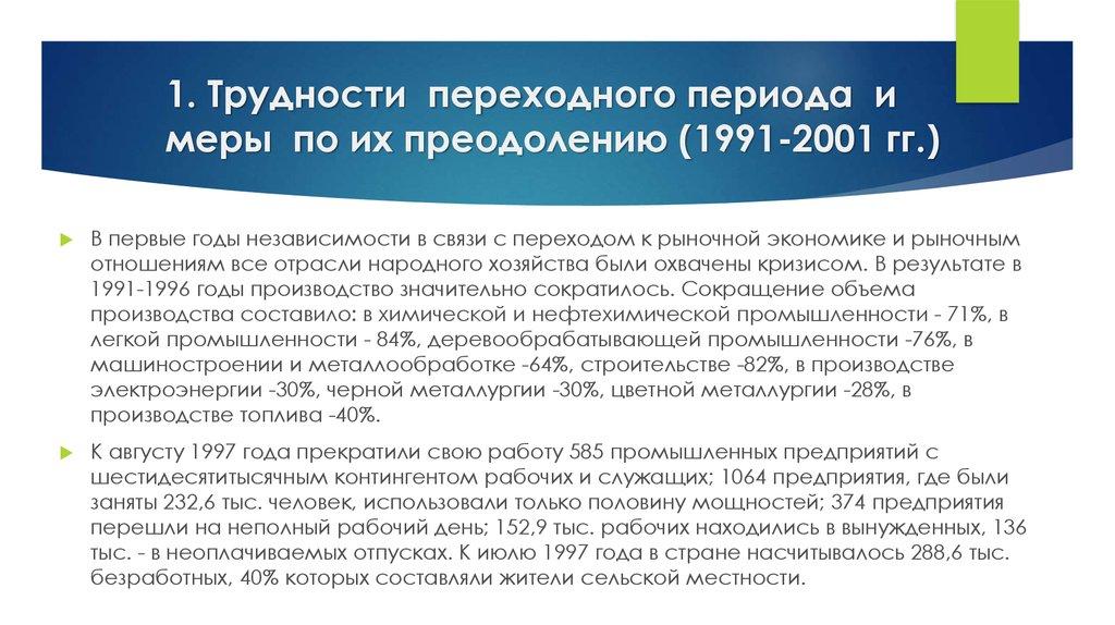 1. Трудности переходного периода и меры по ихпреодолению (1991-2001 гг.)