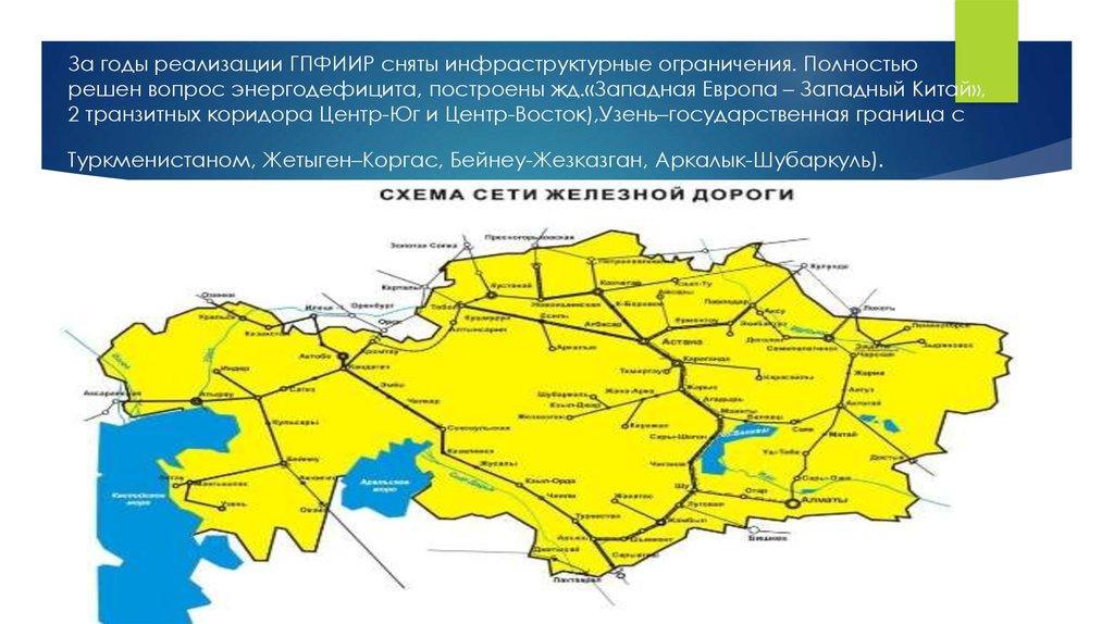 2 транзитных коридора Центр-Юг и Центр-Восток),Узень–государственная граница с