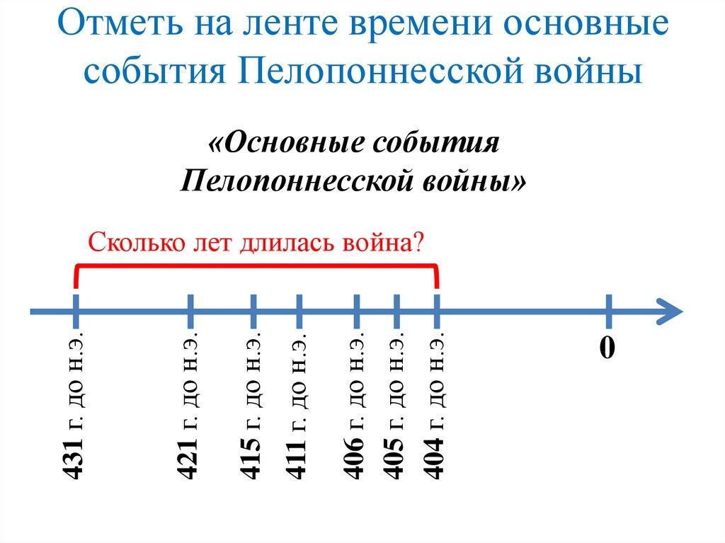 Отметь на ленте времени основныесобытия Пелопоннесской войны