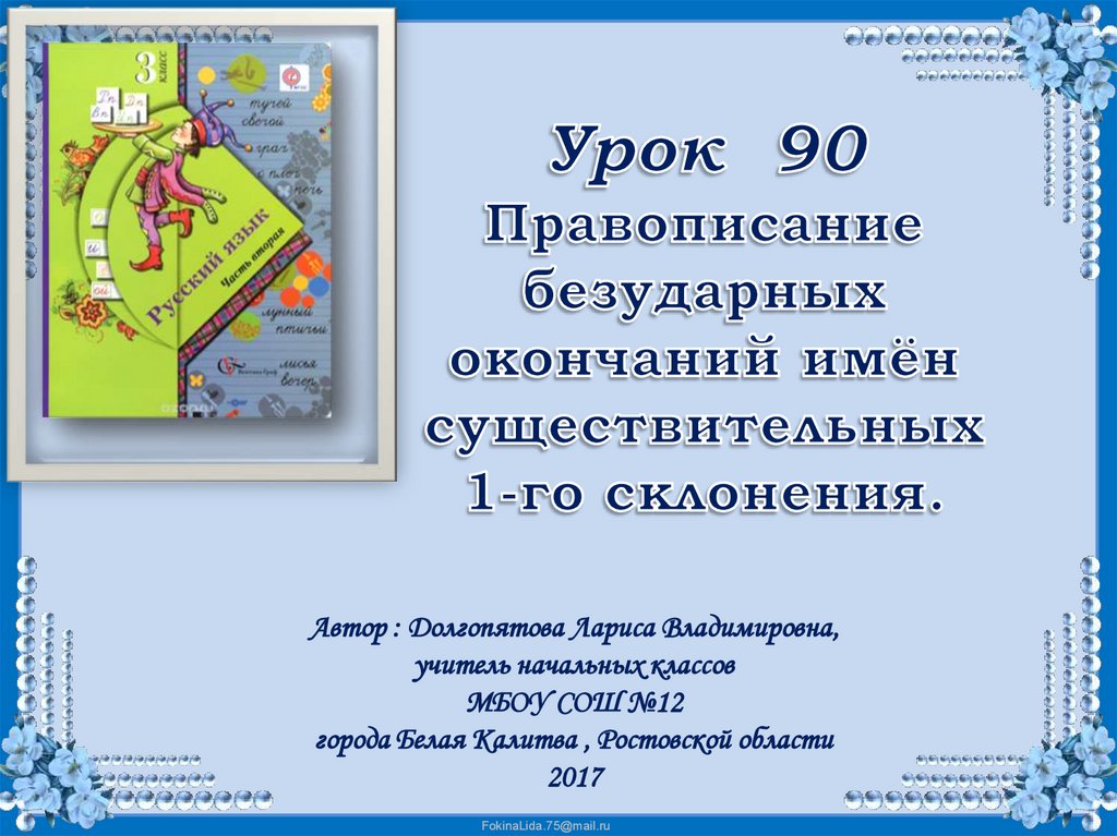 Правописание безударных окончаний имён существительных 1-го склонения. Урок 90