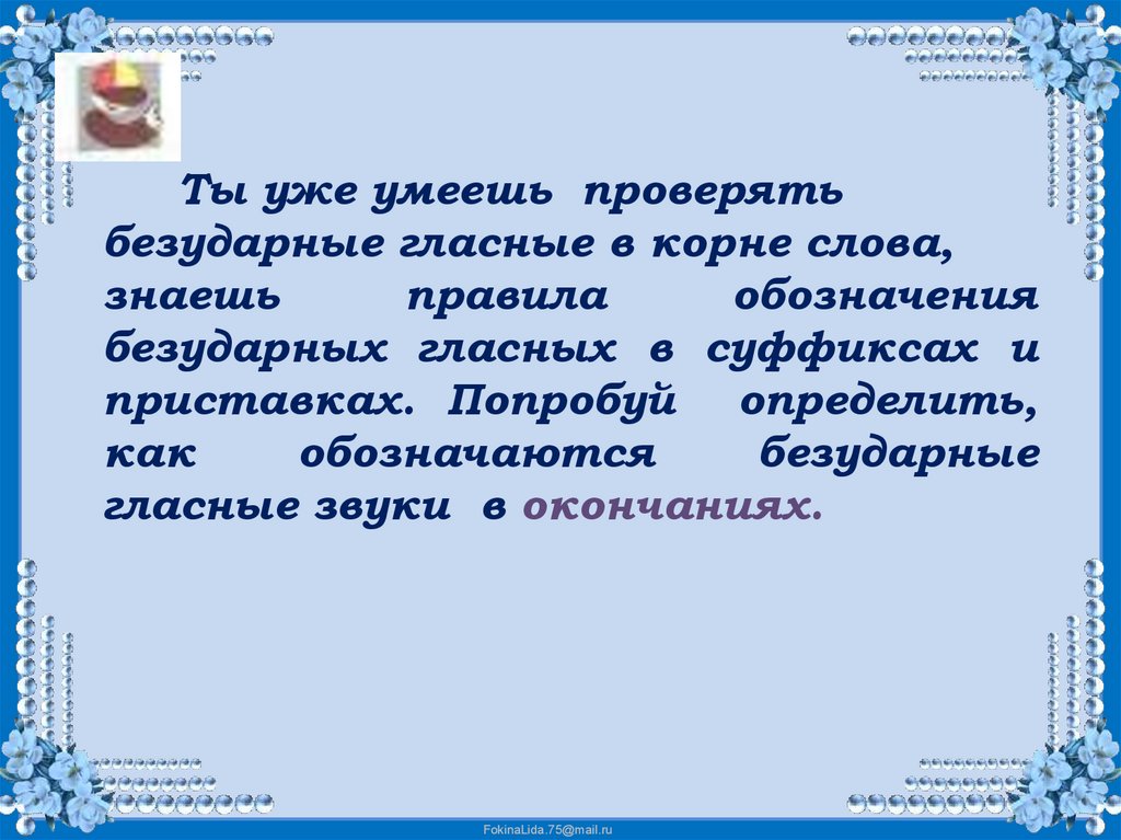 Ты уже умеешь проверятьбезударные гласные в корне слова,