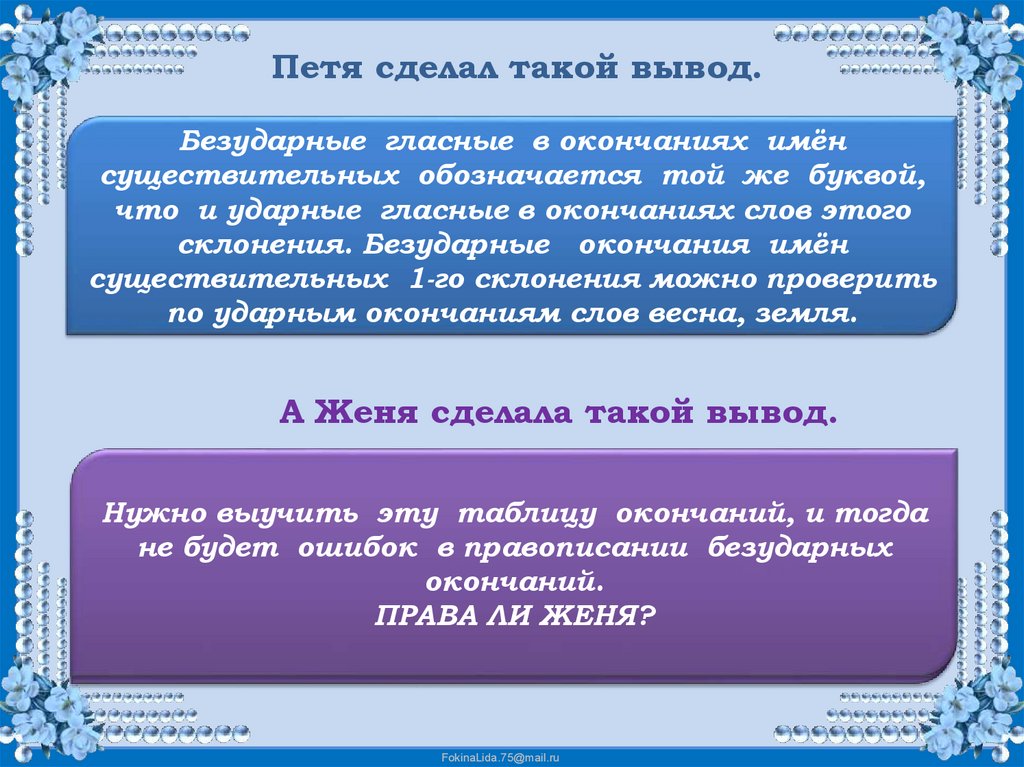 Петя сделал такой вывод.Безударные гласные в окончаниях имён