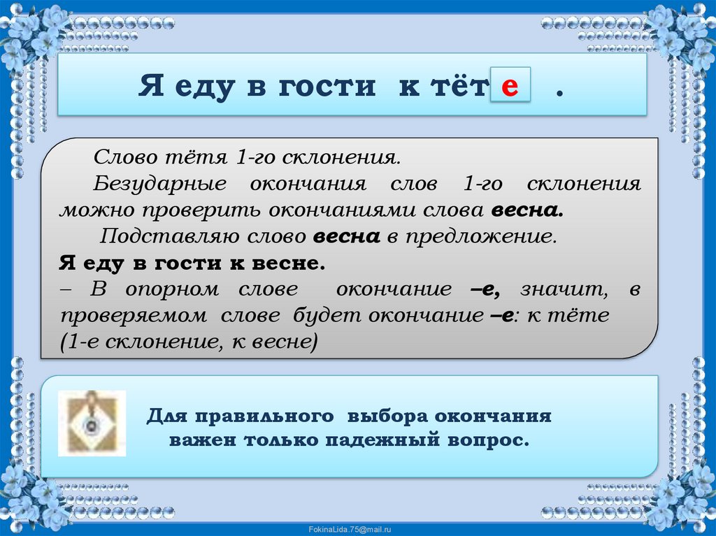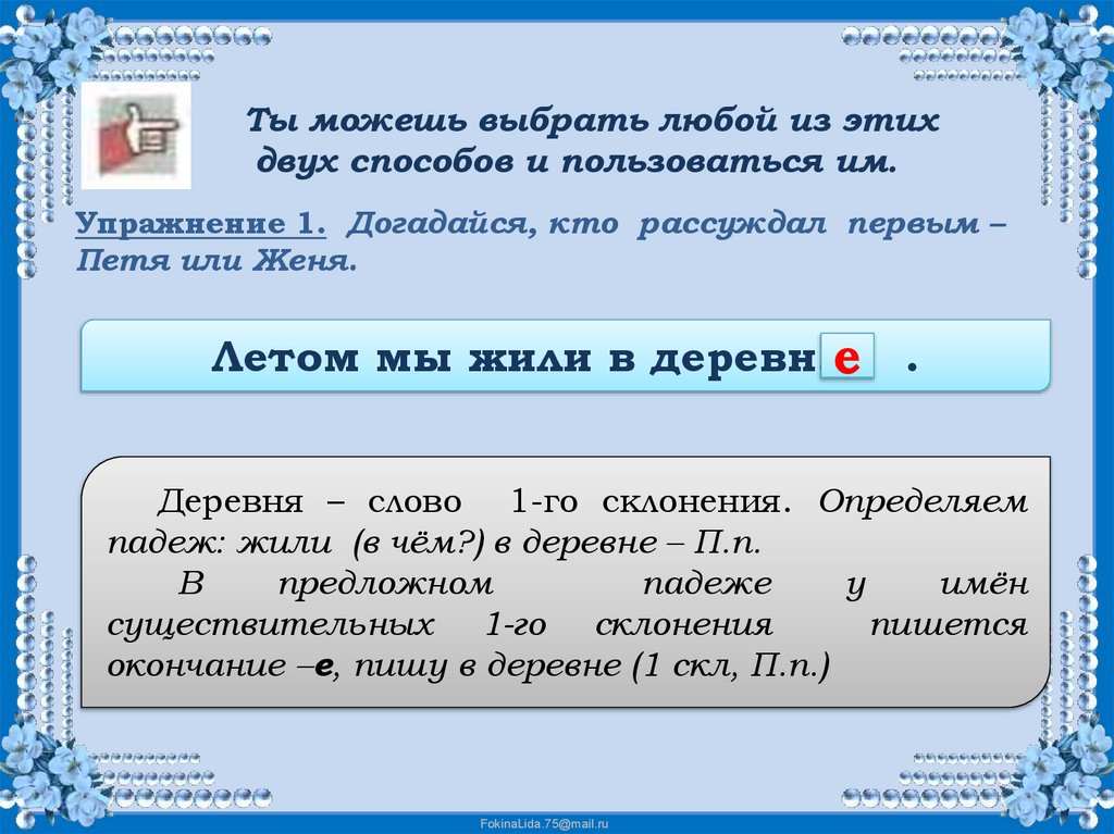 окончание –е, пишу в деревне (1 скл, П.п.)