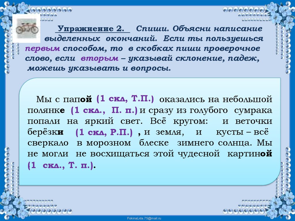 Упражнение 2. Спиши. Объясни написаниевыделенных окончаний. Если ты пользуешься