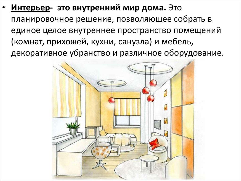 • Интерьер- это внутренний мир дома. Этопланировочное решение, позволяющее собрать в