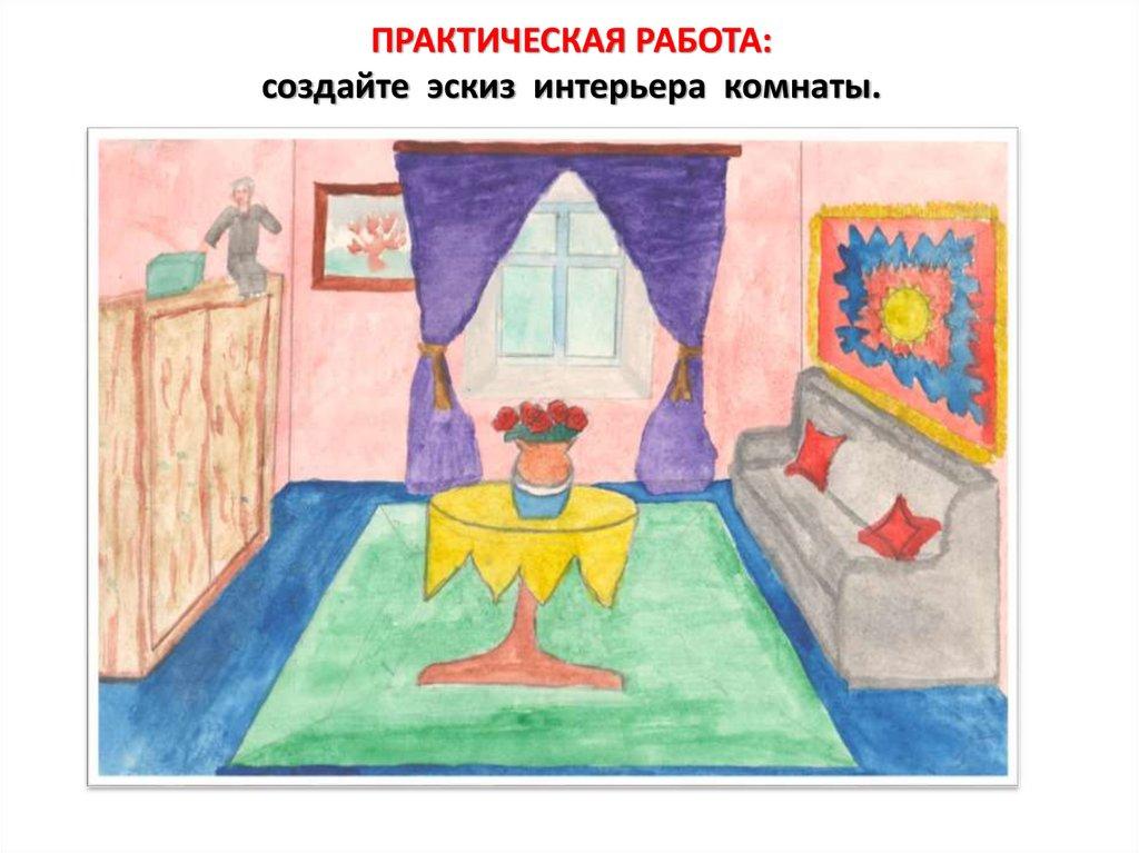 ПРАКТИЧЕСКАЯ РАБОТА:создайте эскиз интерьера комнаты.