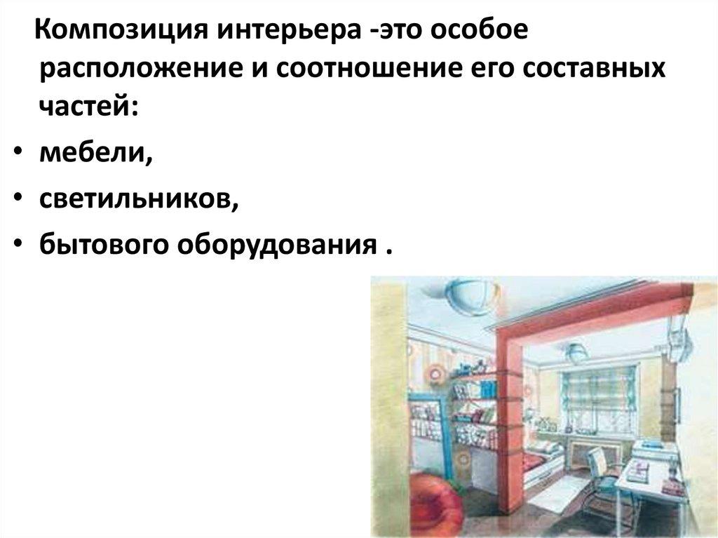 Композиция интерьера -это особоерасположение и соотношение его составных