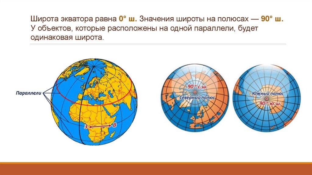 той же параллели, имеют одинаковую географическую широту.