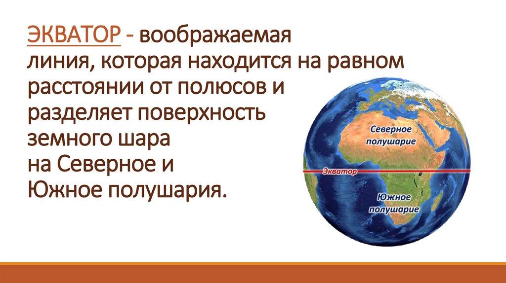 ЭКВАТОР - воображаемаялиния, которая находится на равном
