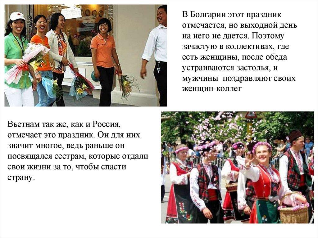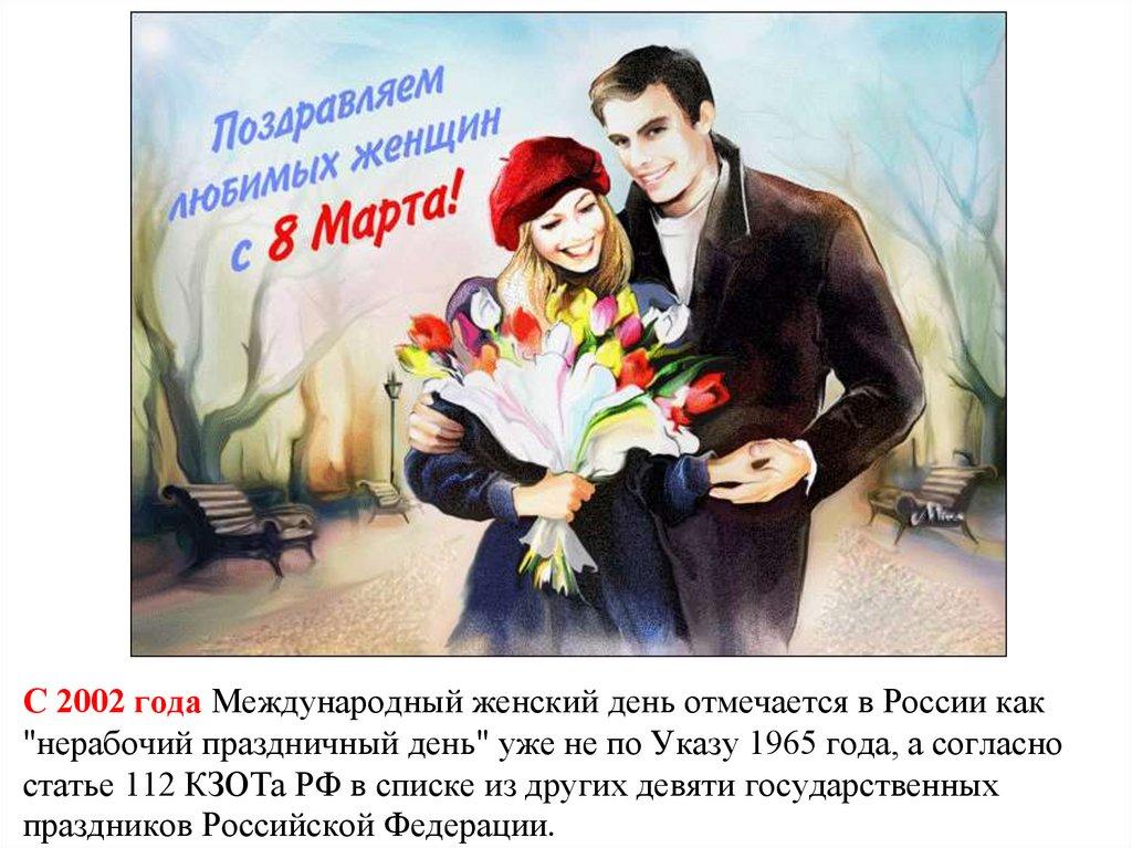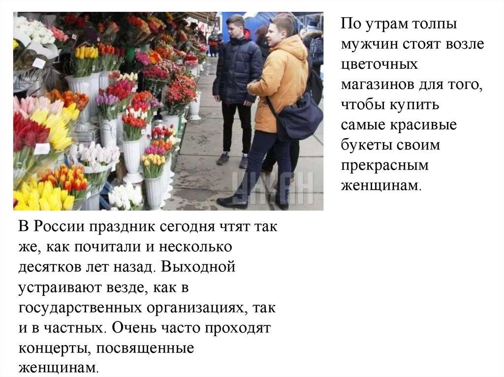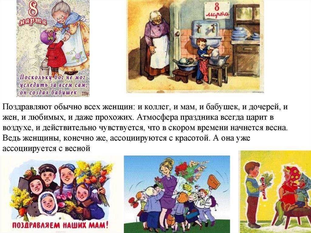 Поздравляют обычно всех женщин: и коллег, и мам, и бабушек, и дочерей, ижен, и любимых, и даже прохожих. Атмосфера праздника всегда царит в