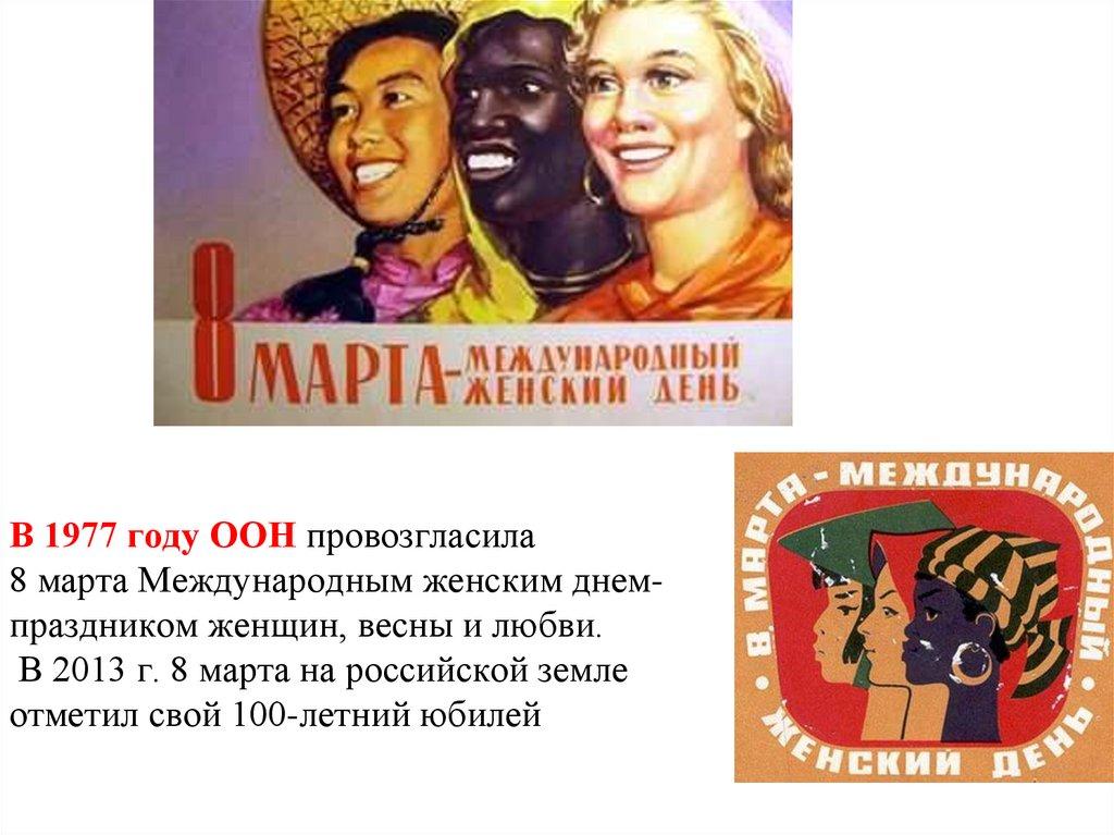 В 1977 году ООН провозгласила8 марта Международным женским днемпраздником женщин, весны и любви.