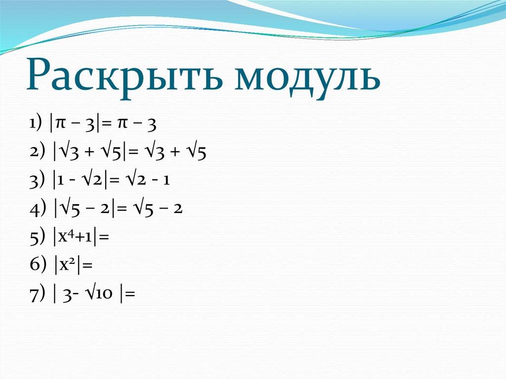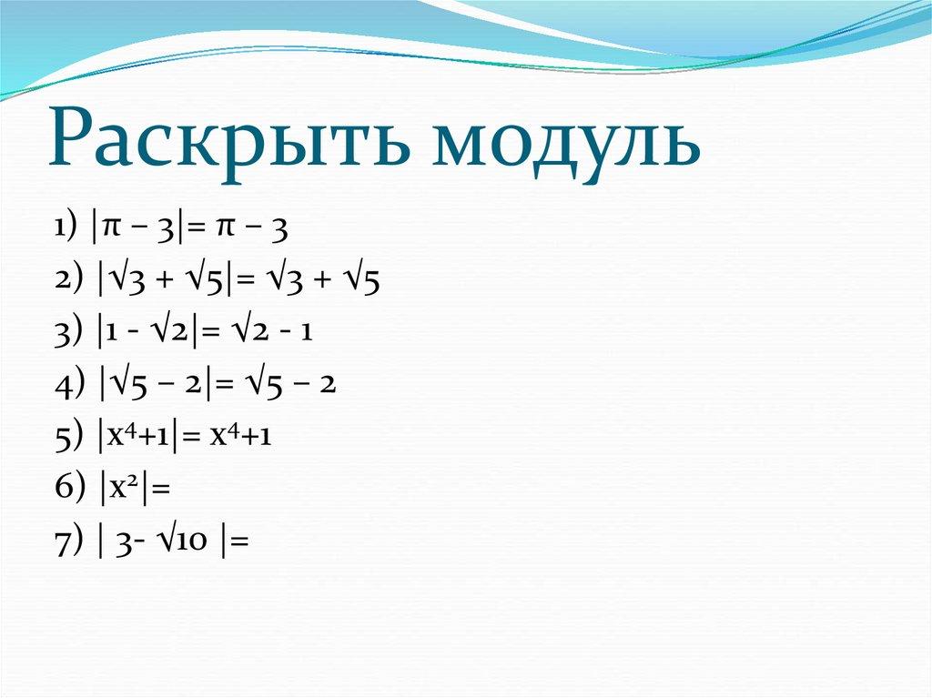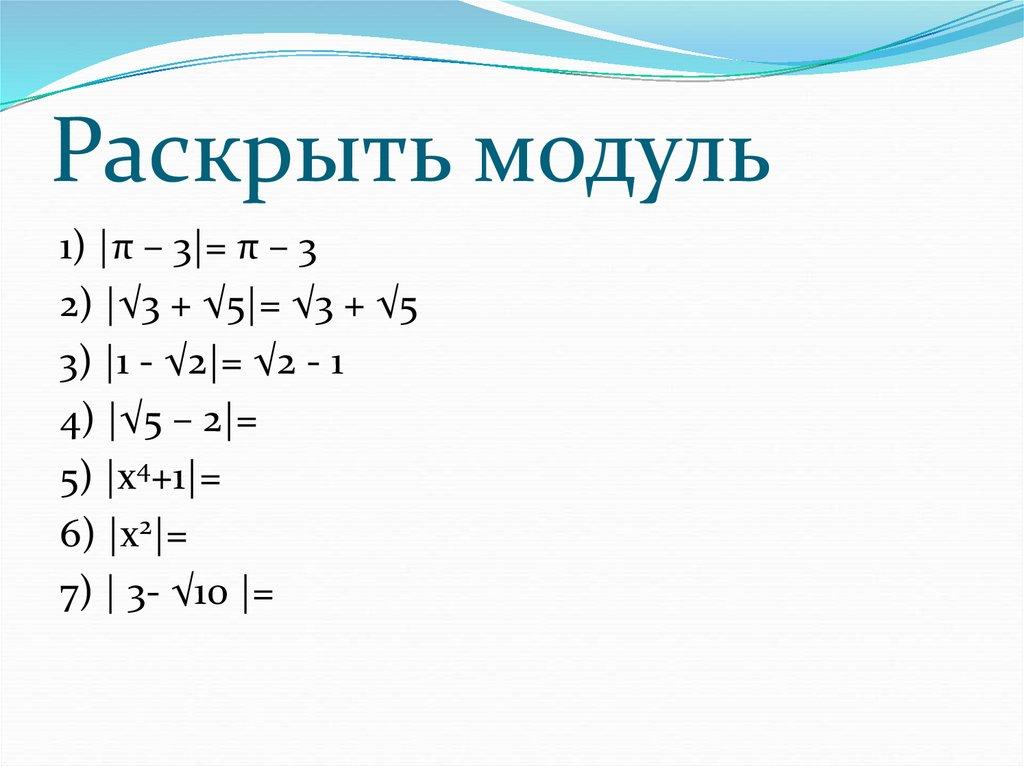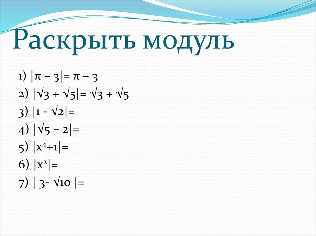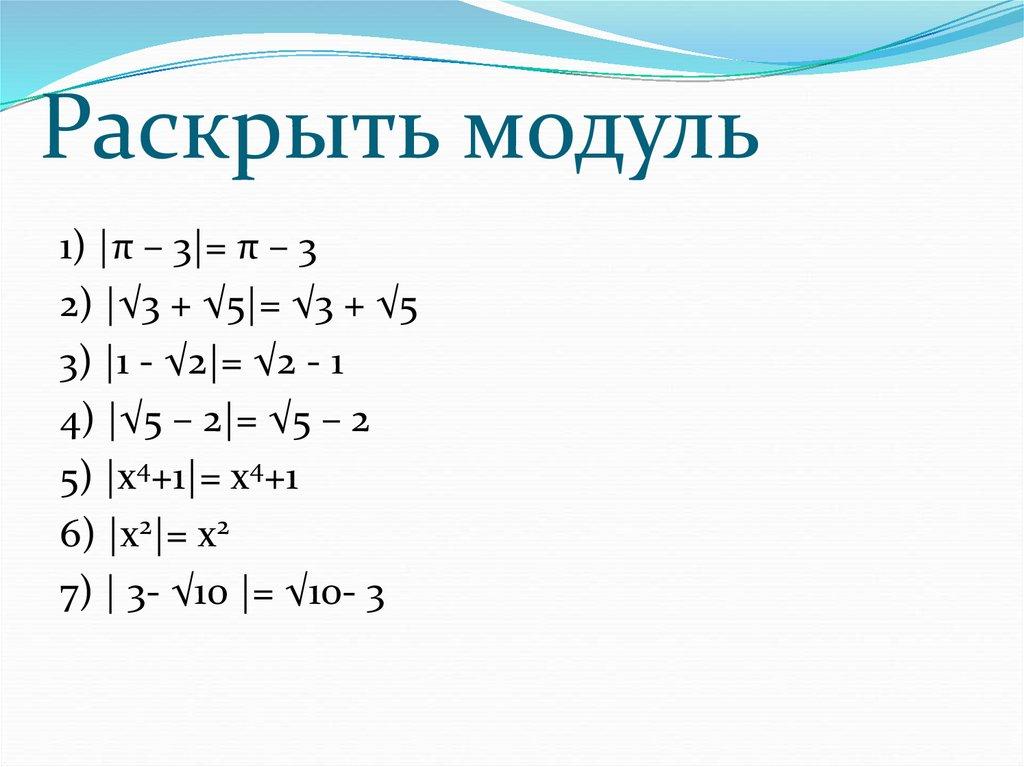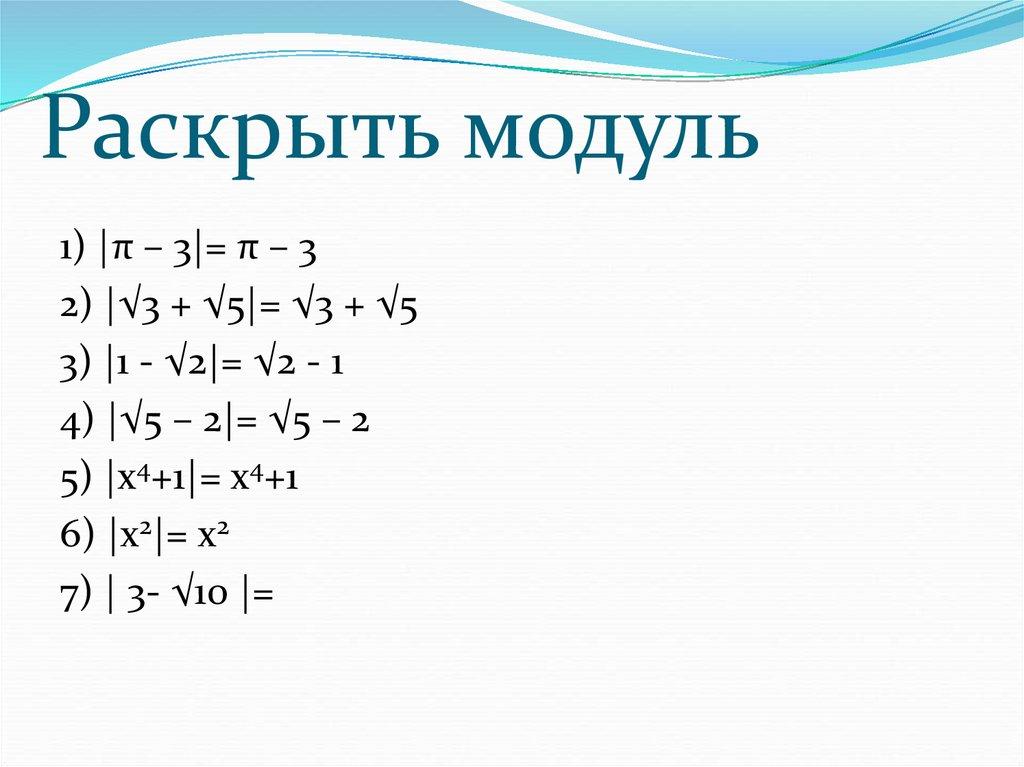 1) |π – 3|= π – 32) |√3 + √5|= √3 + √5