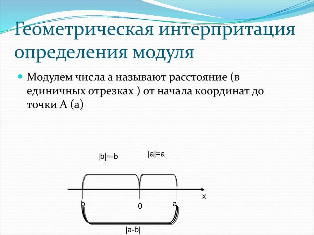 Модулем числа а называют расстояние (вединичных отрезках ) от начала координат до