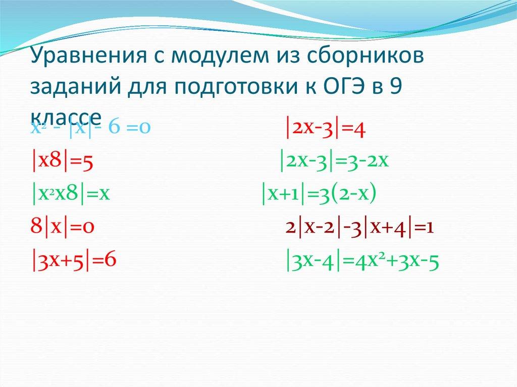 17. Уравнения с модулем из сборников заданий для подготовки к ОГЭ в 9 классе