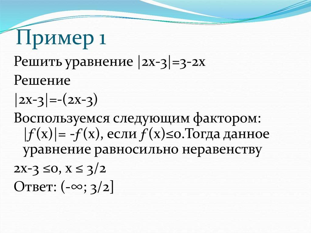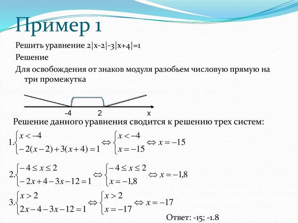 не содержащее знаков модуля и равносильно исходному уравнению на