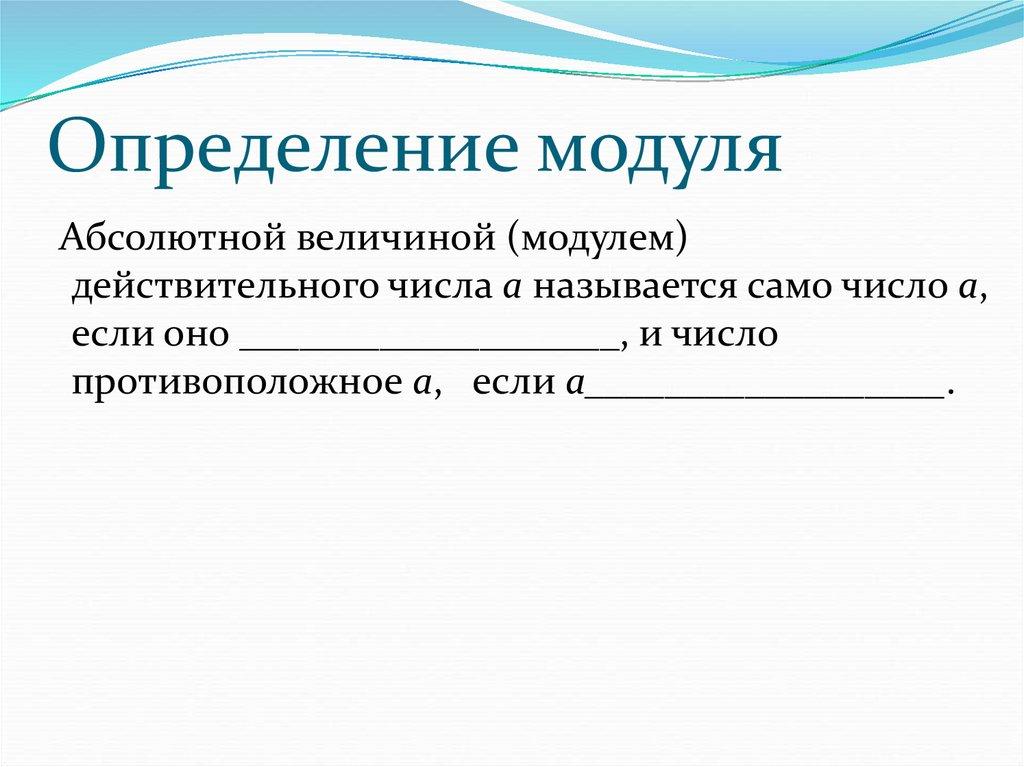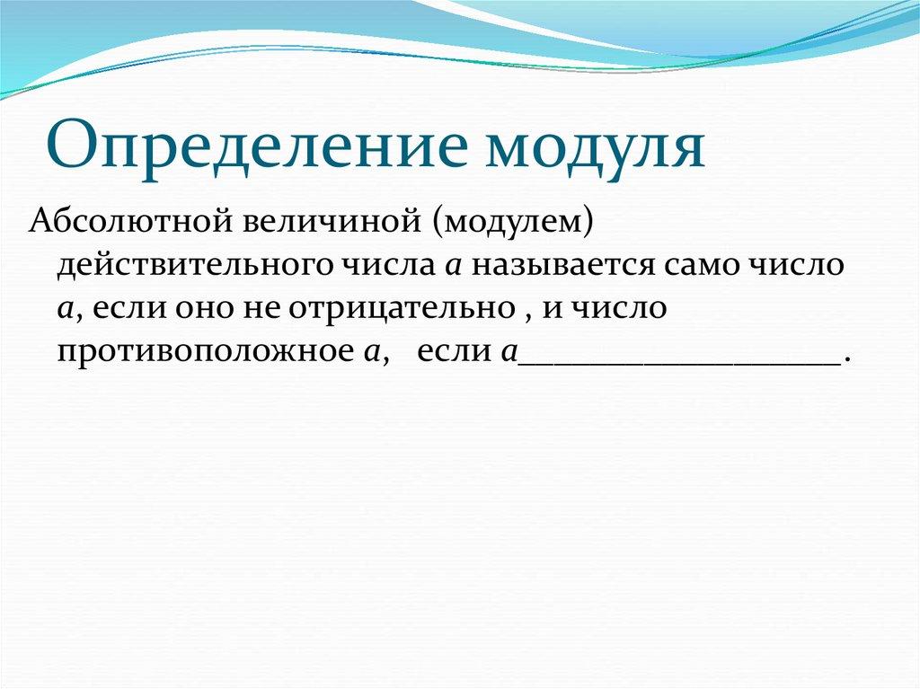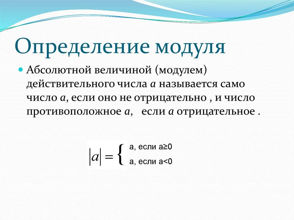 Абсолютной величиной (модулем)действительного числа а называется само число а,