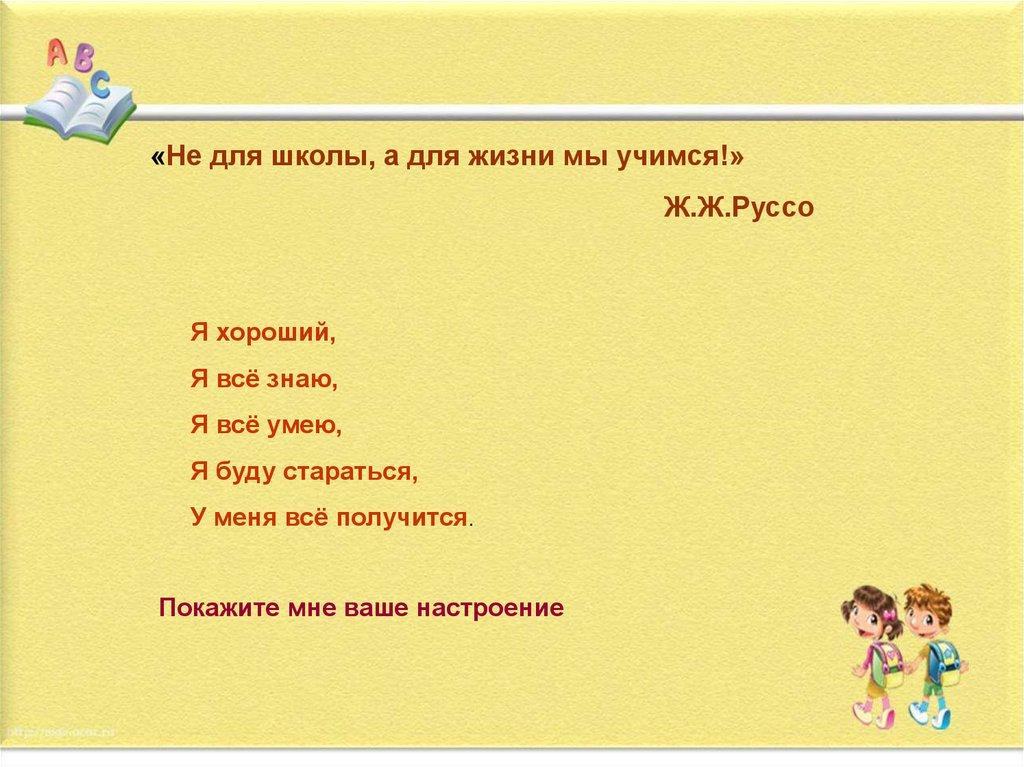 «Не для школы, а для жизни мы учимся!»Ж.Ж.Руссо