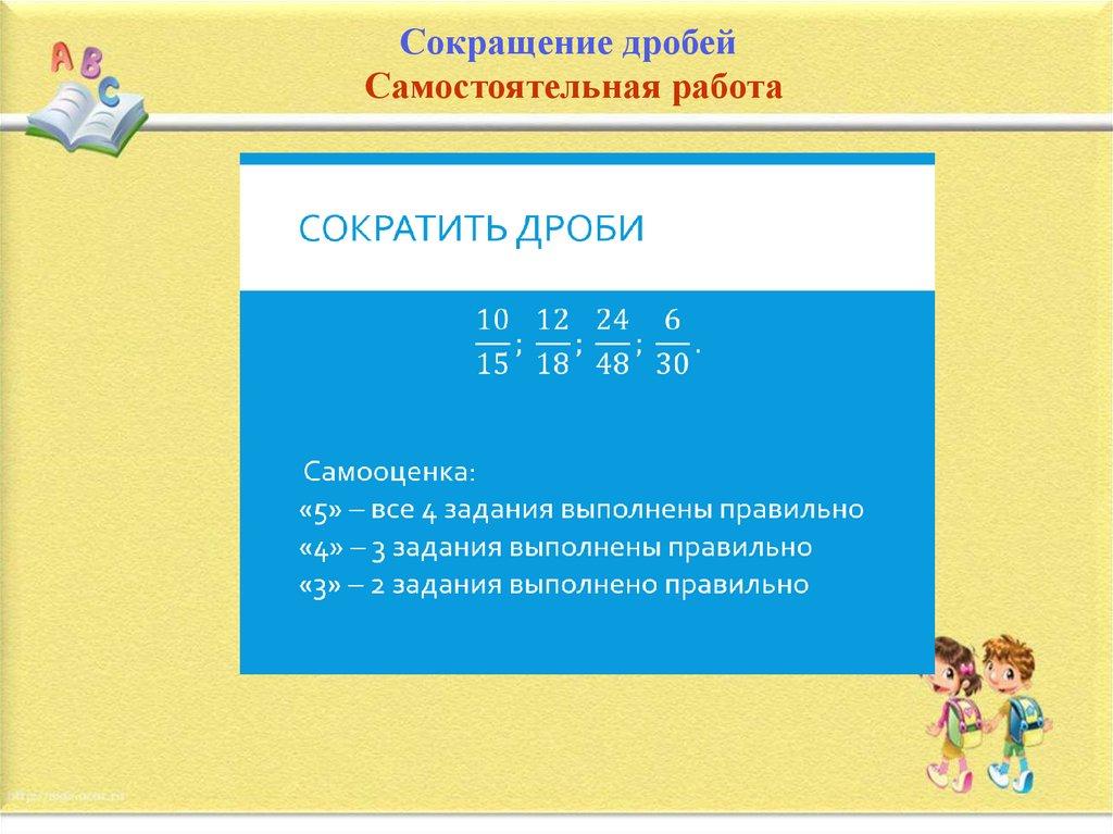 Сокращение дробейСамостоятельная работа