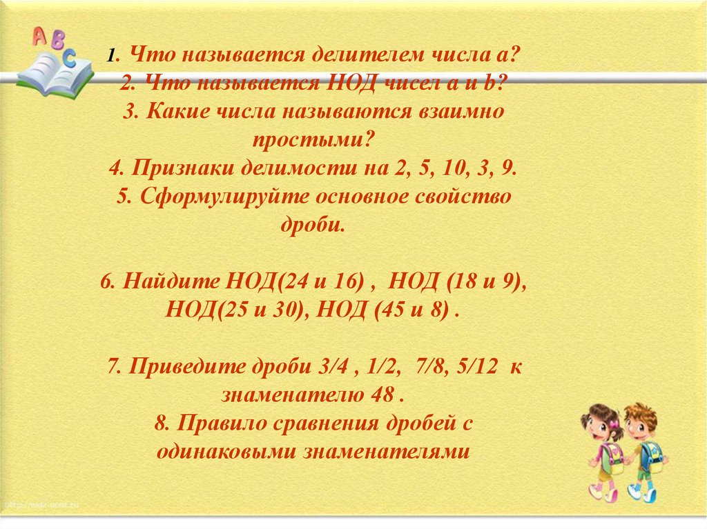 1. Что называется делителем числа a?2. Что называется НОД чисел a и b?