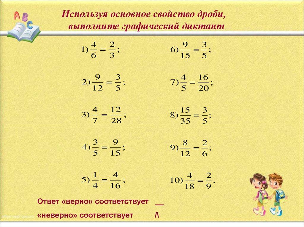 Используя основное свойство дроби,выполните графический диктант