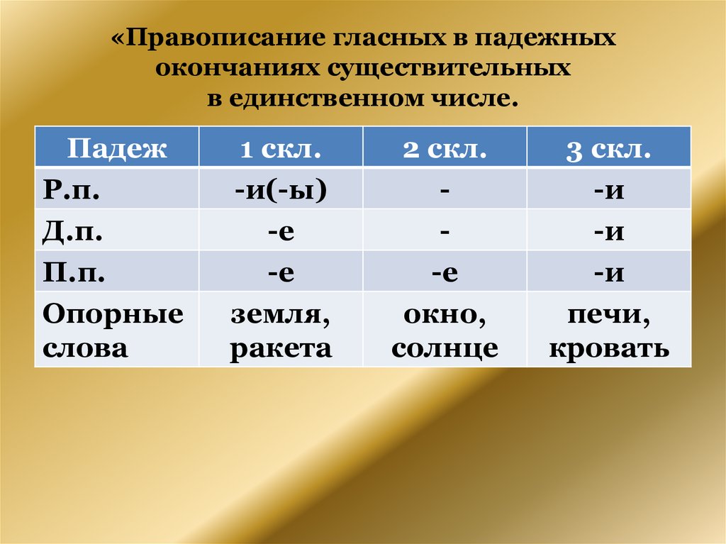 «Правописание гласных в падежныхокончаниях существительных