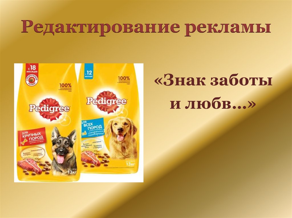 Редактирование рекламы«Знак заботы