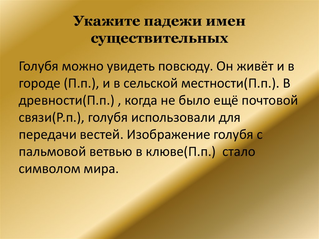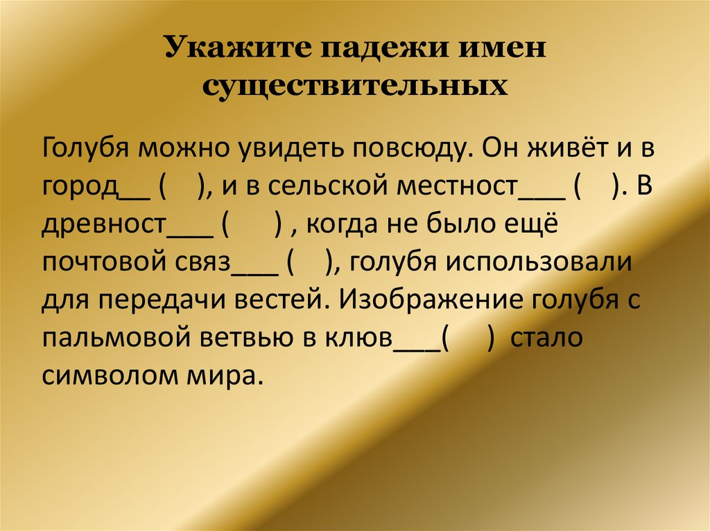 Укажите падежи именсуществительных