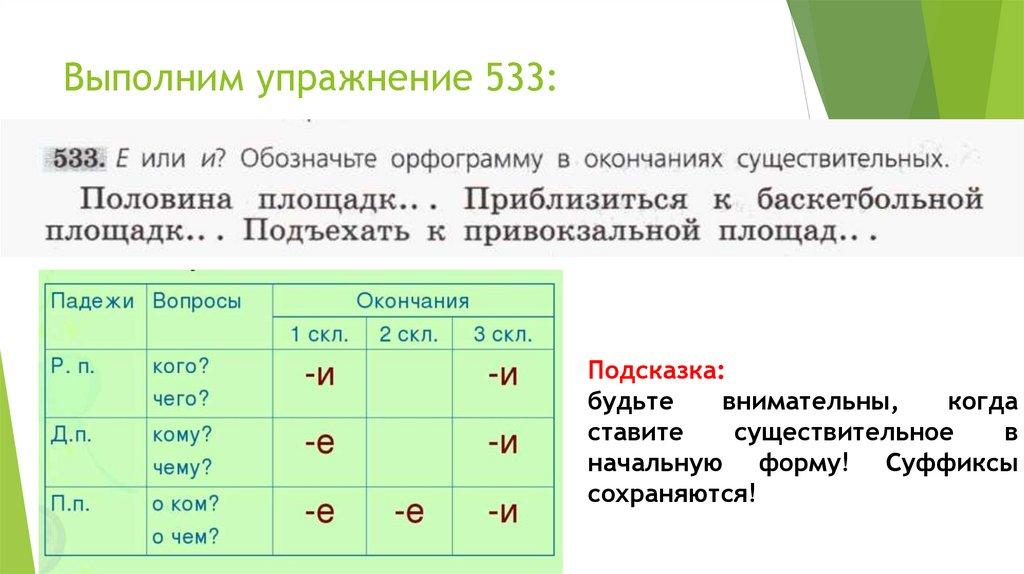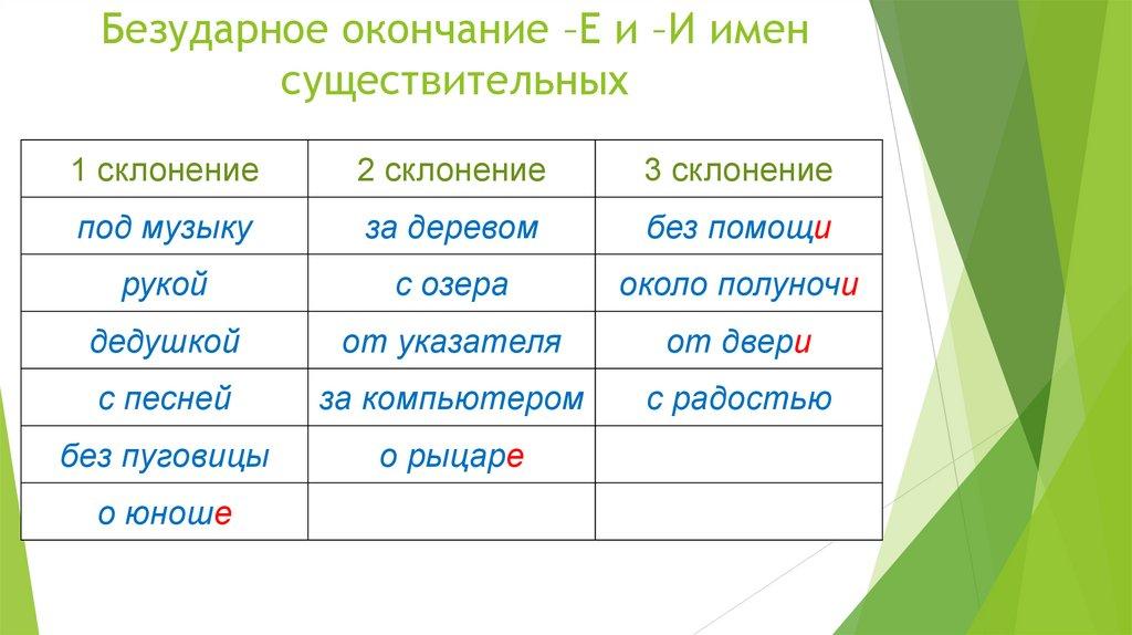 Обратите внимание: падеж у сущ. 2 и 3 скл.